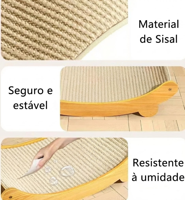 Material de Sisal Natural e Resistente:A superfície principal é confeccionada em material de sisal. O sisal é uma fibra natural conhecida por sua textura áspera e alta resistência, ideal para os gatos afiarem suas unhas sem danificar móveis. A trama é firme e durável, suportando o uso diário.